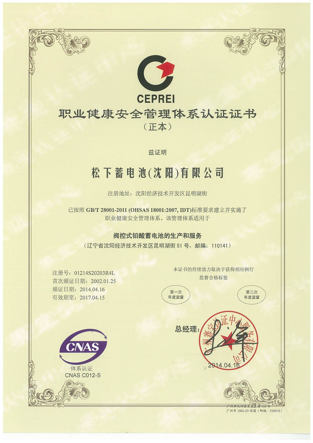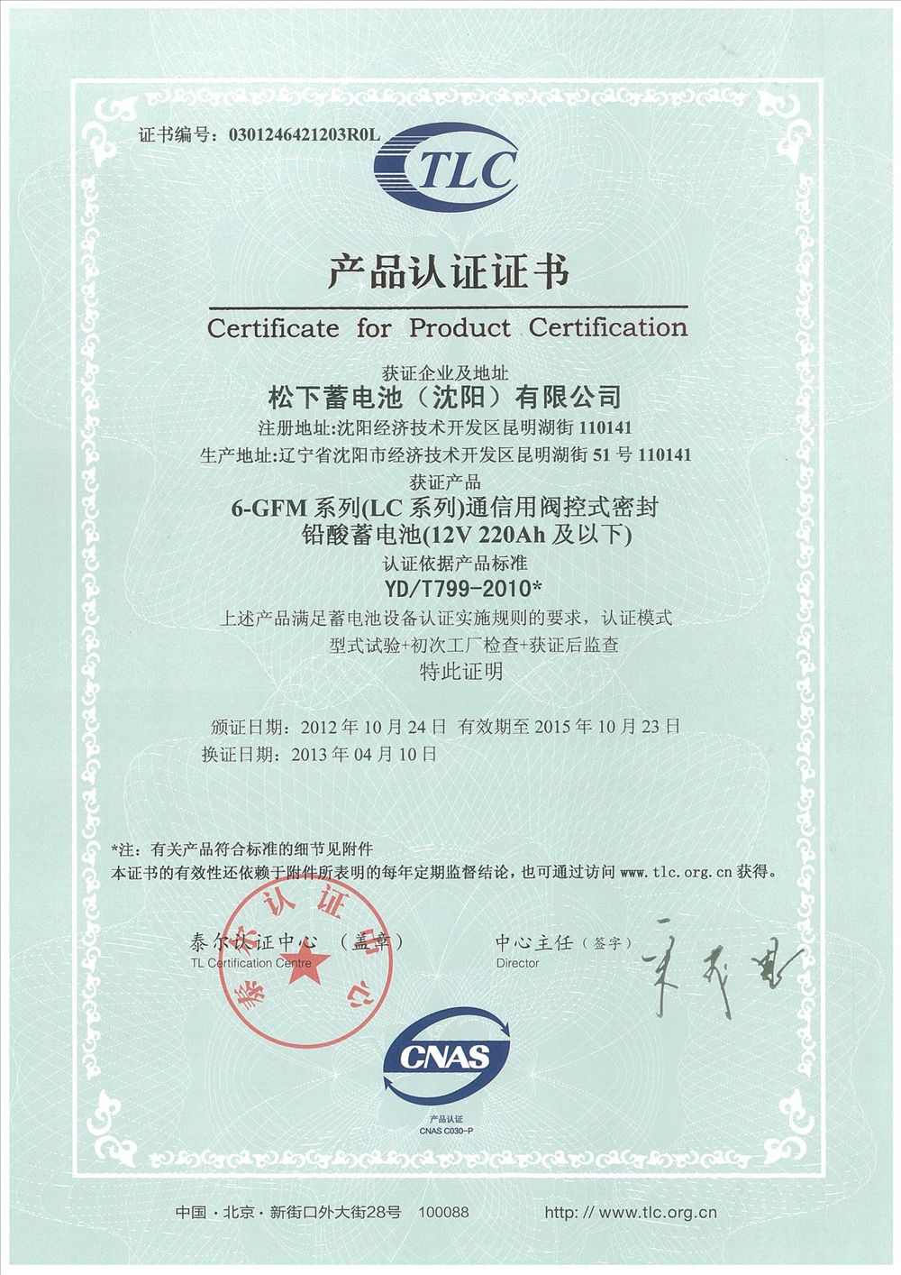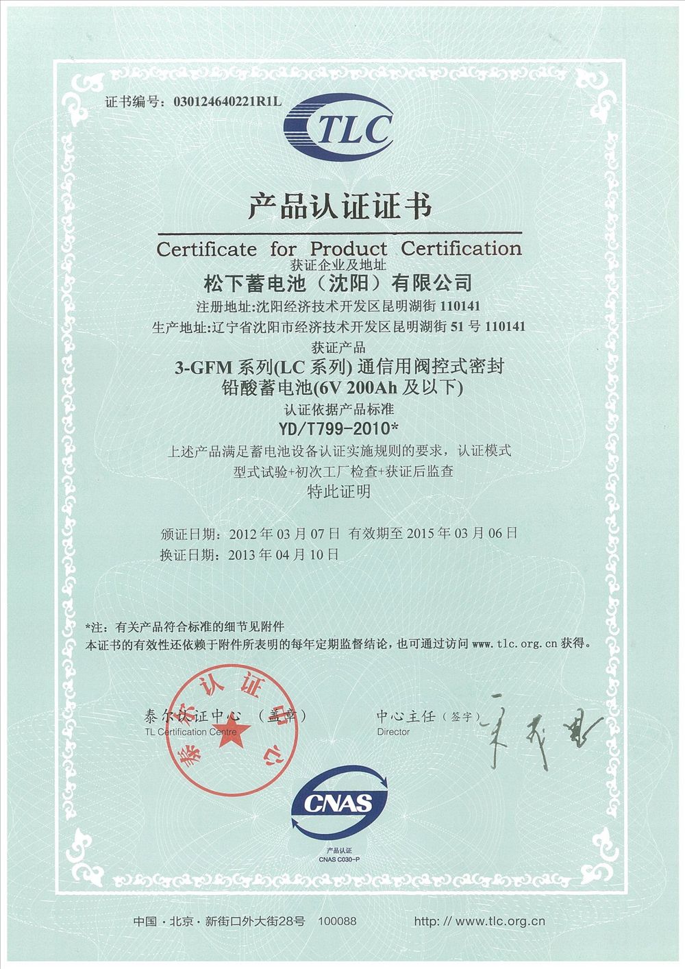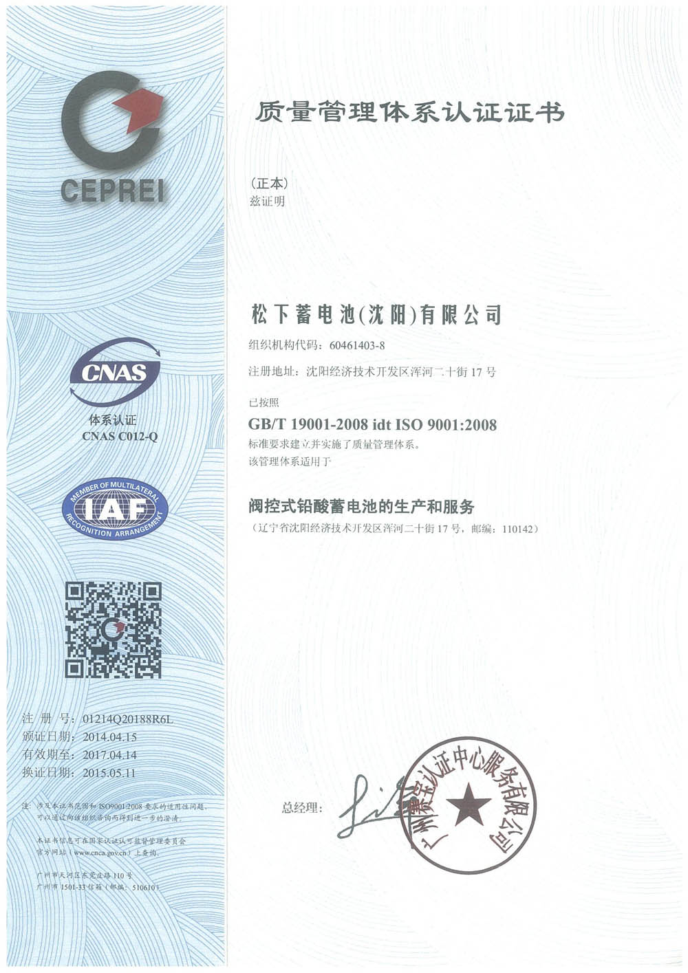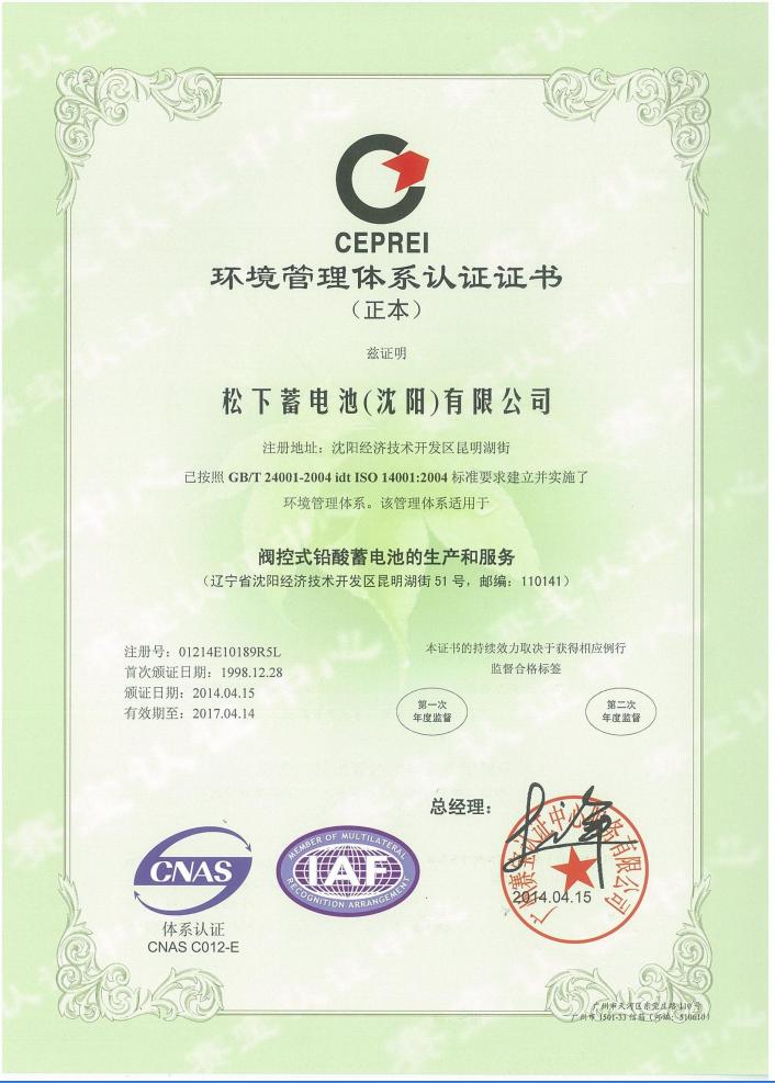 松下蓄電池質(zhì)量證書